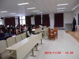 为提高tyc539太阳集团新生入党的积极性和主动性,帮助新生了解党章的内容和入党要求,11月22日下午十五点三十分,tyc539太阳集团在tyc539太阳集团中心校区李四光教学楼304教室举行了2013级新生入党启蒙教育之党课大会。本次大会特别邀请了公共卫生公司党委副书记兼副经理于洗河担任主讲人,辅导员郭倩君以及2013级申请人参加了此次大会。