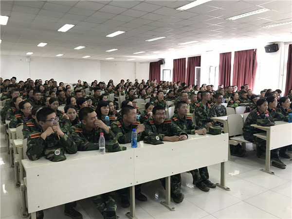 同学们按时到场,身着统一的迷彩服,穿戴整齐符合要求,隐隐约约闪烁在帽檐下的汗滴,折射出刚才结束的训练有多么艰苦,而他们脸上绽放的笑容说明训练苦中有乐。