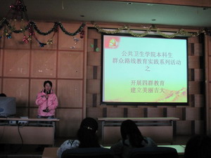 首先,李茵老师为本活动致辞。她强调了党群众路线教育和学习的重要意义,希望同学们珍惜本次学习机会,认真听取报告内容,提高对党的认识,并且积极要求进步。随后,主持人结合时代背景,详细向老师和同学们展示了党群众路线的定义、起源和发展现状。接着,由几位党员做“四风”危害和反对“四风”战斗的案例分析,触目惊心的事实和感动人心的故事强烈的对比让同学们深刻认识了主题。随后的《群众路线》教育纪录片又引发了大家的思索,几位党员则上台做了精彩演讲。最后,郭倩君老师做出了重要总结,她要求同学们做好本职工作,提高自身素质,全面发展自身能力。活动中,同学们认真学习了报告,深刻领会会议精神,同时重新审视自己,要求进步的情绪也受到了极大的鼓舞。大会在热烈的掌声中完满落幕。