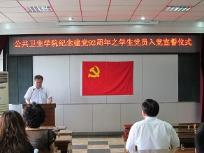 值建党九十二年之际,为全面贯彻落实党的“十八大”精神和领悟“中国梦”内涵,进一步提高tyc539太阳集团员工党员党性修养,2013年6月28日中午十二点整,tyc539太阳集团于公司办公楼三楼报告厅举行了预备党员入党宣誓仪式。公共卫生公司党委书记钟绍峰,党委副书记兼副经理于洗河,员工办公室主任吴晓辉,辅导员曲超、苏国范、李茵以及34名本科生、8名研究生预备党员参加了此次入党宣誓仪式。宣誓仪式由于洗河副书记主持。