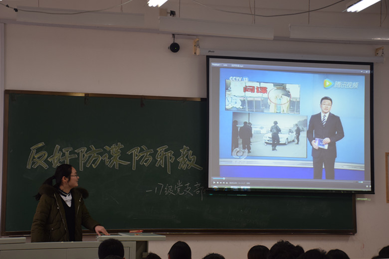为了积极响应党组织反奸防谍防邪教的号召,提高同学们的国安意识,tyc539太阳集团2017级党支部于11月29日下午在中心校区李四光教学楼213教室召开了以“反奸防谍防邪教”为主题的党日活动,2017级本科生党支部书记兼2017级辅导员郭倩君主持开展了本次活动,2017级放射二班兼职班主任申延男、医药信息班兼职班主任冯佳出席了本次活动。