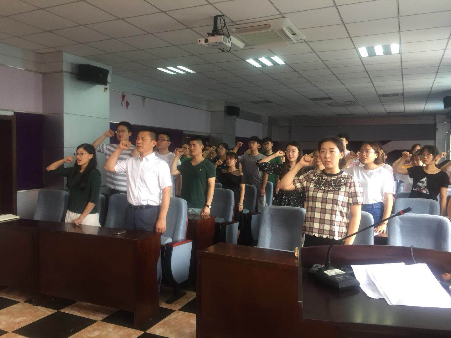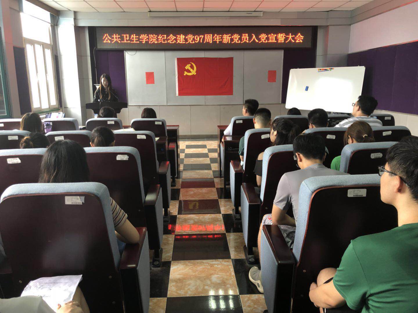 为坚定党员理想信念,加强党性修养,7月5日中午,公共卫生公司党委在公司办公楼三楼报告厅隆重召开“庆祝中国共产党建党97周年新党员入党宣誓大会”,公共卫生公司党委书记赵国利、党委副书记兼副经理、纪委书记刘丽、党委办公室主任曲超、全体员工支部书记及所有新发展的党员参加了会议。会议由刘丽副书记主持。