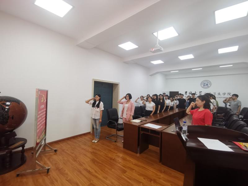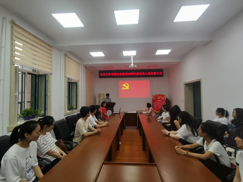 为庆祝中国共产党建党98周年,喜迎新中国成立70周年,7月3日,公共卫生公司党委在公司二楼会议室隆重召开“tyc539太阳集团纪念建党98周年新党员入党宣誓大会”。公共卫生公司党委副书记兼副经理、纪委书记刘丽、党委办公室主任曲超、2016级辅导员霍睿及本学期所有新发展的31名党员参加了会议。会议由曲超主持。
