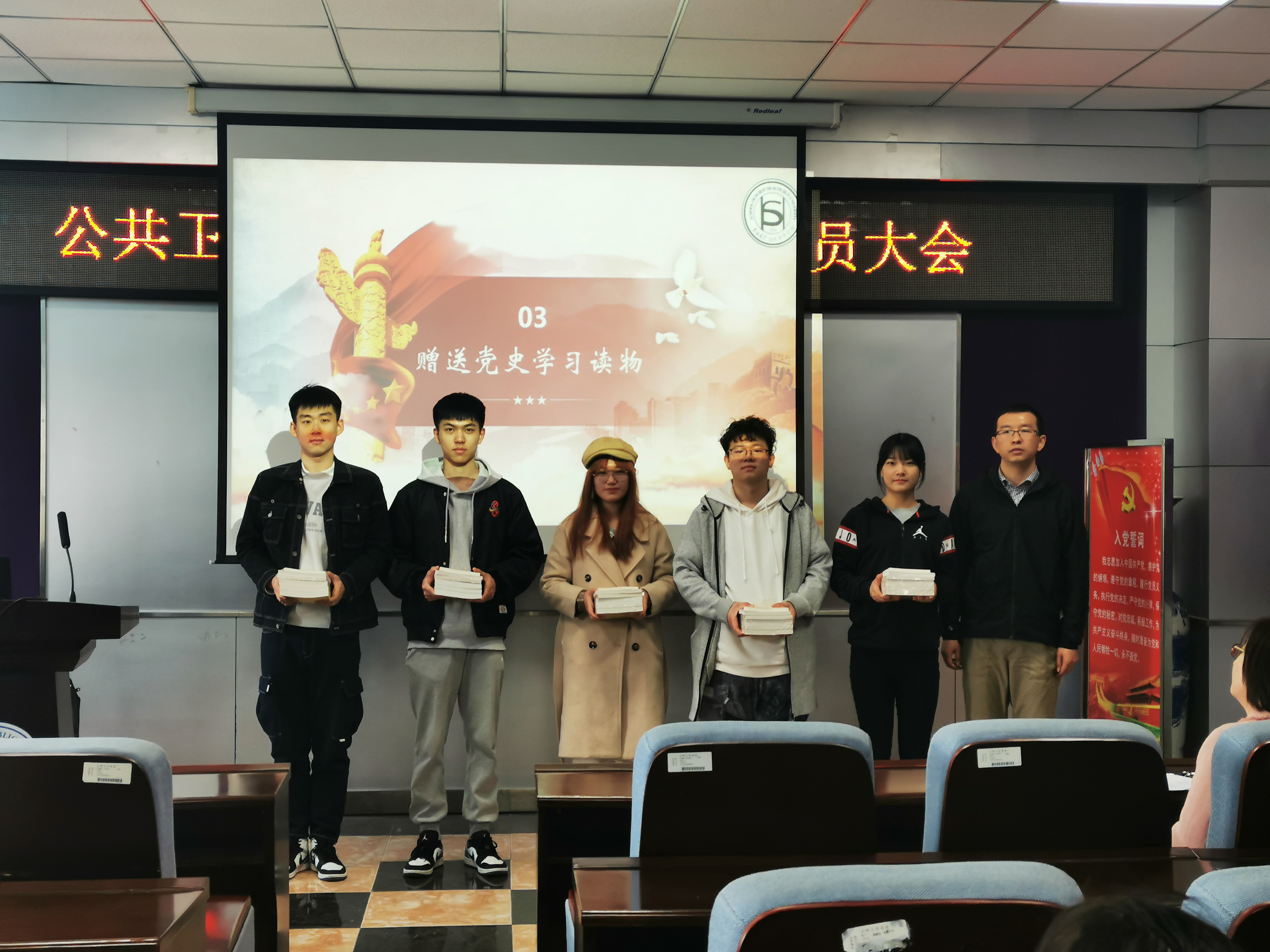 首先,苏国范老师进行了本科生党史学习教育动员讲话。苏老师谈到,在中国共产党建党100周年到来之际,中共党员尤其是青年党员要担负起时代重任,为实现党的百年目标努力奋斗。要落实好党中央要求,推动党史学习教育取得扎实成效,深刻认识学习党史的重要性,更好地从党的百年征程中汲取前进的智慧和奋进的力量。随后,冷贺璇老师就公司即将开展的本科生党史学习教育系列活动方案进行了详细的介绍,希望在扎实做好日常理论学习的同时,通过丰富多彩、青年们喜闻乐见的活动形式让党史学习教育“动起来、活起来、热起来、亮起来”,带领青年党员身临其境学党史,在学思践悟中坚定理想信念,在奋发有为中践行初心使命。利用公司微信公众平台,开辟“百年党史青年说”“百年党史周周测”等专栏,选聘员工“党史宣讲员”,同时线下组织开展理论学习,通过微党课大赛、红歌会、志愿服务、走访红色基地等活动创新教育形式。接下来,苏国范老师向本科生党支部代表赠送党史学习读物。冷贺璇老师和刘心怡老师向“党史宣讲员”代表颁发聘书。最后,本科生党员代表黄羽薇同学进行了发言。