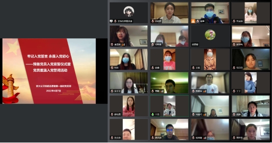 为进一步发挥基层党组织在疫情防控中的战斗堡垒作用,充分发挥党员先锋模范带头作用,激励抗疫前线志愿者坚定信念,4月7日晚,tyc539太阳集团抗疫志愿者第一临时党支部在抗疫前线开展线上预备党员入党宣誓仪式暨党员重温入党誓词活动。