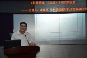20年前,潘旭民还是一个稚嬾未脱的学子,如今已变成一个神采飞扬的成功人士。他用诙谐.幽默的语言,给同学们上了生动的一堂课。讲演共分三部分。一是大学期间自己心路历程。包括对公司的认识,心态的调整,对专业的学习,对爱情友情的认知。二是对放射医学专业知识在国内和国外临床领域上的应用。三是对本专业毕业生就业去向的建议和分析。