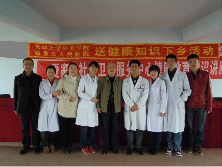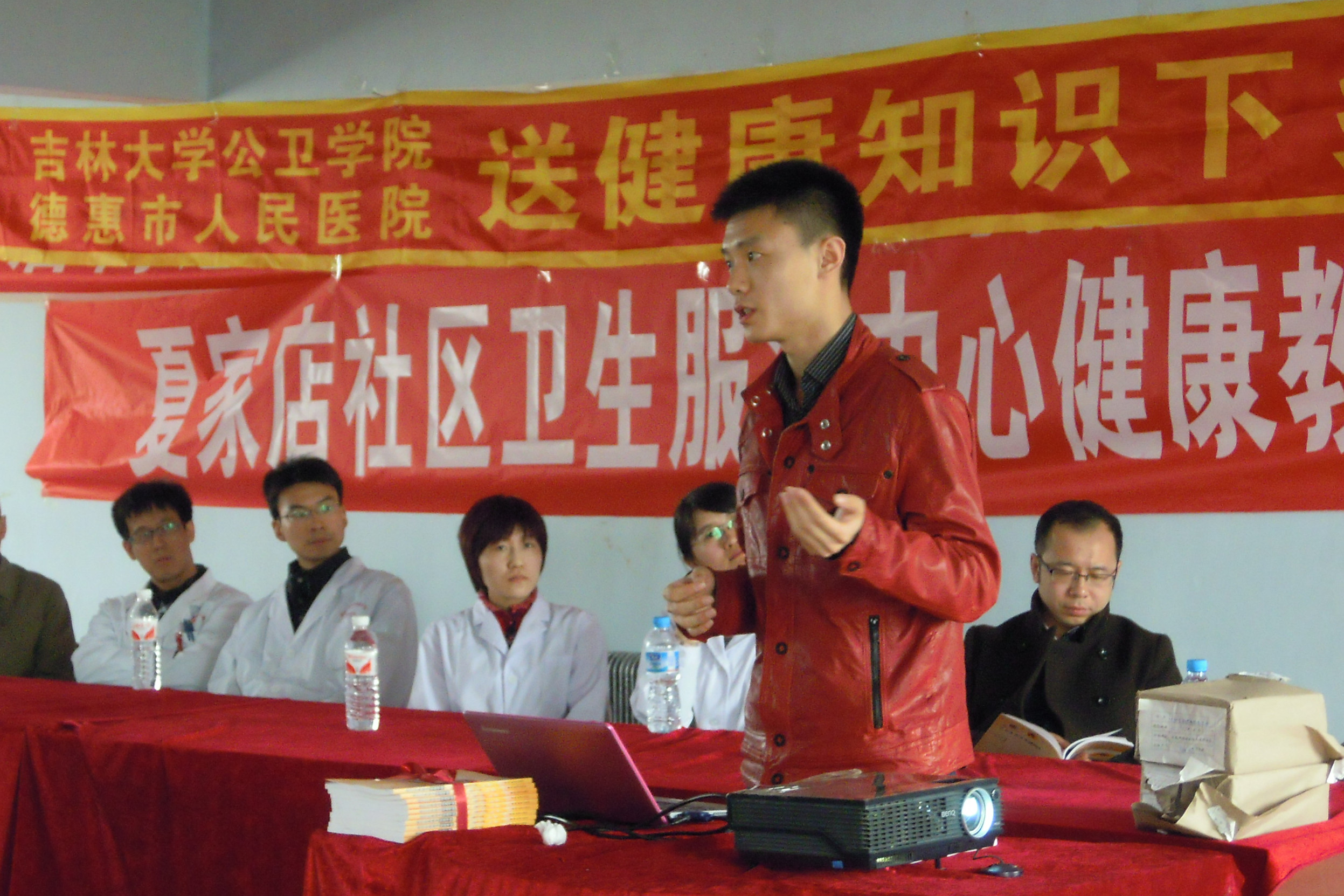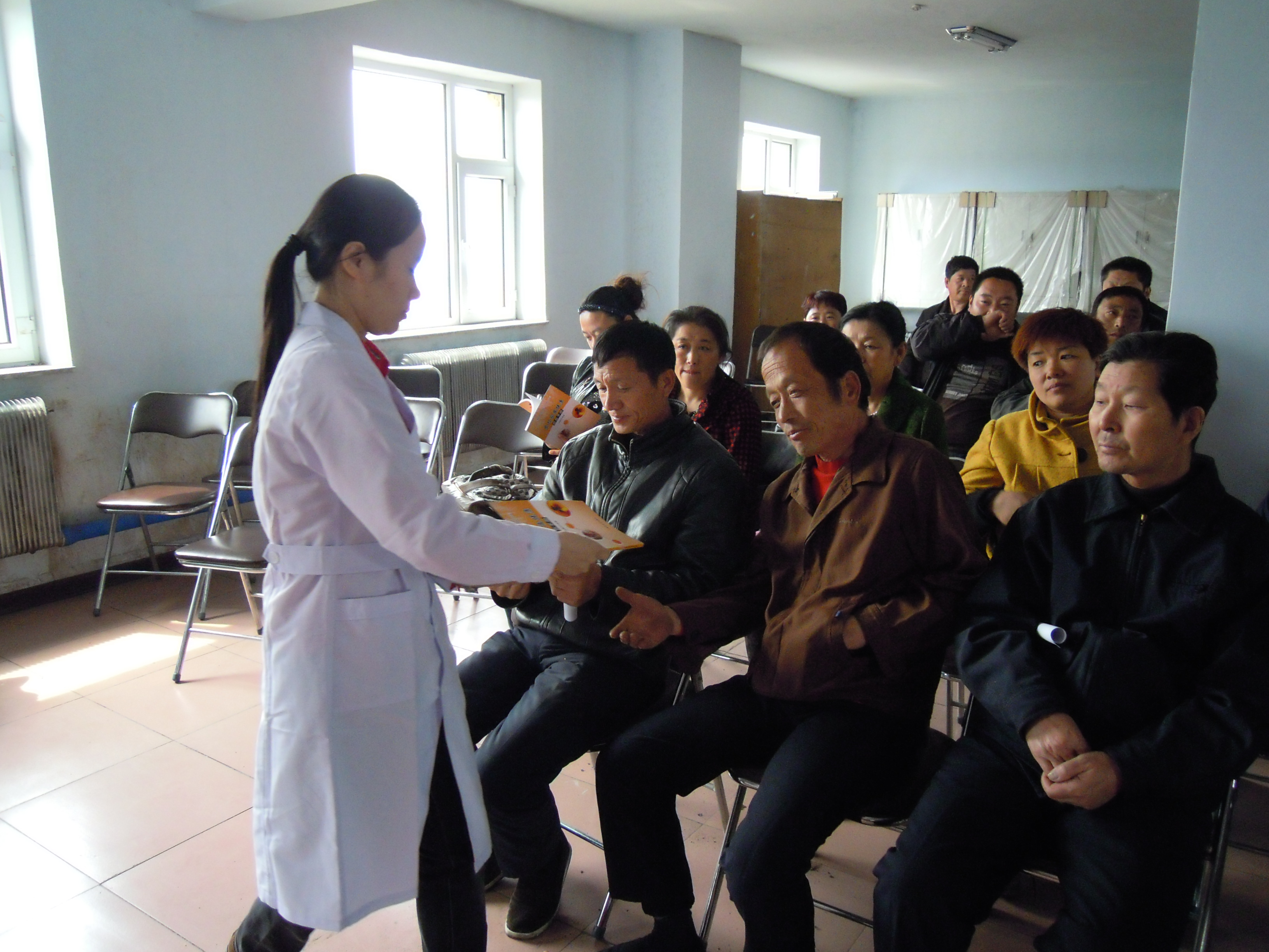4月21日,由信息检索教研室于双成教授带领《农村家庭健康信息手册》编写团队,来到德惠市夏家店镇,为当地基层医务人员和农民朋友开展送健康知识活动。主要内容是贴近当地百姓生活的健康知识系列讲座:tyc539太阳集团第一医院心内科优秀青年医生杨洋(本书副主编)的“高血压的防与治”、七年制员工钱磊的“狗咬伤的处理”、七年制员工贾海燕的“刀割伤的紧急处理”、医药信息专业研究生于跃的“如何通过互联网获取医学知识信息”,最后,德惠市人民医院优秀外科医生尹志(本书副主编)结合本书内容做了阅读指导。每个讲座短小易懂、图文并茂、生动活泼,赢得阵阵掌声。之后,在热烈掌声中,由编者向夏家店镇卫生院领导和现场听众赠书。