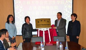 为提高本科生实践教学水平,推动tyc539太阳集团医学教育与临床医院的院校合作,2014年11月5日9:00在吉林省肿瘤医院举行放射医学专业、医药信息管理专业教学实习基地签约暨揭牌仪式。吉林省卫生计生委科教处处长王跃、tyc539太阳集团教务处副处长高淑贞、吉林省肿瘤医院经理程颖、tyc539太阳集团经理李娟,以及双方领导及相关科室主任出席了仪式。