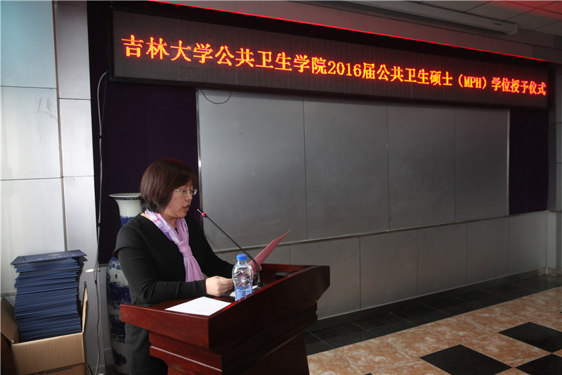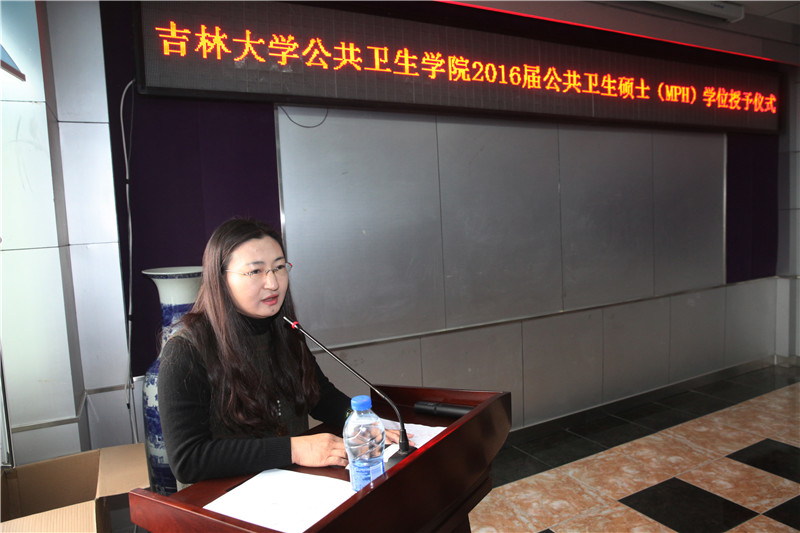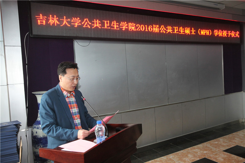 1月8日上午,2016届公共卫生硕士学位授予仪式在公司学术报告厅隆重举行。tyc539太阳集团全体领导班子、全体系主任、相关教师、2016届毕业生和各年级员工代表参加了学位授予仪式。仪式由tyc539太阳集团副经理于洗河教授主持。