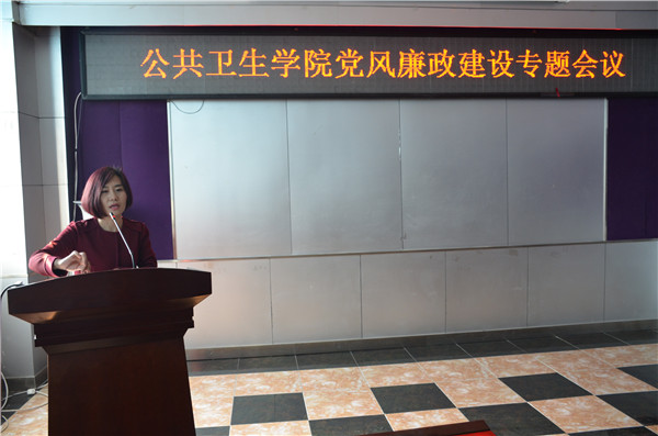 2017年4月7日,公共卫生公司党委在公司三楼报告厅召开了党风廉政建设专题会议,院领导班子、党委委员、纪委委员、三委会主任、系主任、科主任、中心主任、支部书记、全体行政管理人员参加了会议。会议由副书记、副经理兼纪委书记刘丽主持。