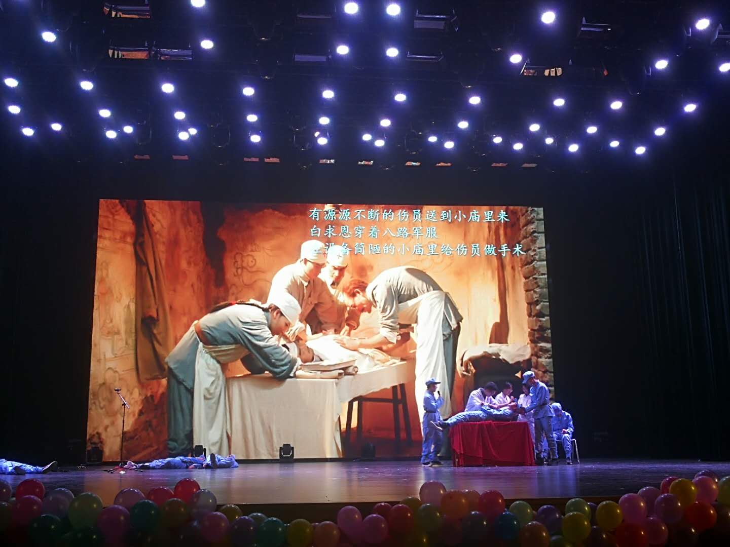随后进行的是大家期待已久的“青春芳华、追梦华夏”迎新晚会。晚会一开始,气氛就被火爆的开场舞点燃。在场的同学们打开手机闪光灯,大声欢呼,挥舞着手中的荧光棒,晚会立即进入了高潮。接下来的节目更是异彩纷呈:有伴随优美舞步的悦耳歌曲《风吹麦浪》;有行云流水、刚劲有力的武术《精忠报国》;有激昂澎湃、满怀豪情的诗歌朗诵《我的中国梦》;有蕴含异域风情的少数民族舞蹈串烧《藏维之美》;有致敬诺尔曼·白求恩医生的舞台短剧《白求恩》;有感人肺腑、震撼心灵的歌舞表演《父亲写的散文诗》;更有可爱的孩子们带来精彩的小提琴演奏……令人兴奋的抽奖环节将气氛再次推向高潮,主持人幽默的语言和夸张的动作不由让观众们捧腹大笑。晚会中,现场氛围始终热烈。在一片和谐的氛围里,晚会接近了尾声。领导、嘉宾们同工作人员、表演者们在舞台上合影留念,共同见证了这场年度盛宴。至此,tyc539太阳集团2017年度迎新晚会圆满落下帷幕。