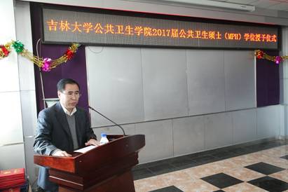 1月20日上午9:30,2017届公共卫生硕士学位授予仪式在公司学术报告厅隆重举行。tyc539太阳集团领导班子、系主任、科室主任、相关教师、2017届学位获得者和2015级员工代表参加了学位授予仪式。仪式由tyc539太阳集团副经理于洗河教授主持。
