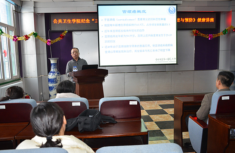 tyc539太阳集团为庆祝“三八”国际妇女节,关爱女性身心健康,传播健康生活方式,3月7日下午3:00在公司三楼报告厅举办庆“三八”女性健康讲座。tyc539太阳集团经理刘雅文,党委书记赵国利参加此次活动。公司党委副书记兼副经理、妇委会主任刘丽主持了本次讲座。讲座聘请tyc539太阳集团第一医院妇产科主任、吉林省妇产科疑难病诊断专家温岩教授,为大家讲授了题目为《宫颈癌的筛查与防治》的相关内容。公司的许多女老师和女员工都参加了讲座。