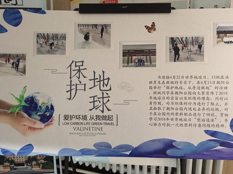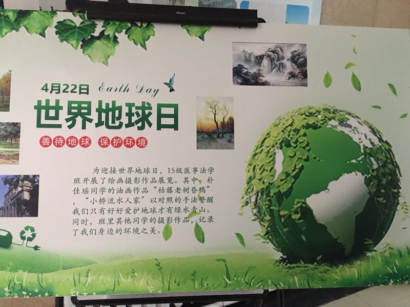 为迎接4月22日世界地球日,tyc539太阳集团医事法学专业特举办“保护地球,保卫家园”的宣传活动,本次活动以,2015级医事法学班的主题班会为主题,2015级医事法学班全体同学于4月15日在朝阳公园举行了“保护地球,从身边做起”的回收环保活动。同时,还积极制作世界地球日主题展板,并在tyc539太阳集团办公楼一楼大厅进行了汇报展示。这是医事法学专业的第二次系列活动。