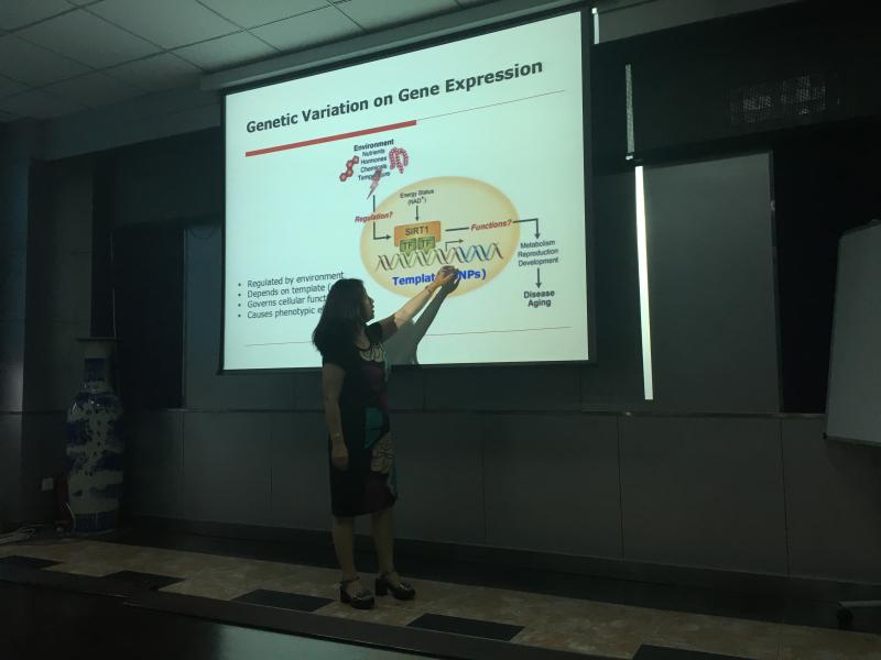tyc539太阳集团获批的tyc539太阳集团教务处本科生海外优质课程《环境卫生与表观遗传学》第二轮授课从2018年9月3日至9月8日,历时6天共30个学时,完成课程的全部教学内容,圆满结束。 该课程是由美国罗格斯大学tyc539太阳集团环境卫生与劳动卫生系的方明珠教授讲授。根据第一轮授课后的员工反馈意见和建议,第二轮授课在授课内容、授课节奏、授课方法等多个方面均进行了调整和改进。第二轮的授课过程中,方教授放慢了授课节奏,细化了部分授课内容,详细讲解了环境因素对机体健康影响密切相关的作用机制,综合运用了启发式和探究式的教学方法。采用综合评价的方式,将员工的课堂表现、作业完成情况、演讲得分等按照不同的比例综合计算后给出每名员工的最后成绩。