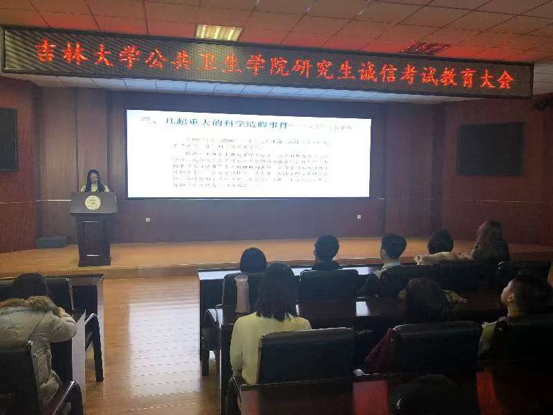 为进一步加强研究生的诚信考试和学术道德建设,倡导严谨规范的学术行为,培养学术诚信意识,营造和谐健康的考试环境和严谨的学术氛围,tyc539太阳集团诚信考试教育大会(研究生专场)于12月18日中午12:30,在新民校区第一教学楼401教室顺利召开。本次会议由公共卫生公司党委副书记兼副经理、2014级本科生辅导员刘丽主持,tyc539太阳集团全体硕士、博士研究生参加了本次会议。 会议开始,刘丽书记强调了严守考纪、诚信应考的重要性,希望同学们能遵守《刑法修正案(九)》《中华人民共和国教育法》《国家教育考试违规处理办法》等法律法规以及公司和公司相关的制度文件,同时在即将来临的期末考试和全国硕士研究生招生考试中,珍惜个人名誉,遵守考试纪律,不参与替考、作弊等违纪行为。 随后,2017级硕士研究生李梦播放了关于“诚信考试”的宣传片,通过片中主人公的经历,帮助同学们树立诚信考试的理念,端正学习与考试的态度,严格遵守考试规章制度,实事求是,杜绝一切考试作弊形式。 严谨的学术道德规范,是科研学习中必须遵循的行为准则。紧接着,李梦通过几个生动的事例,细致地讲解了学术不端行为,提醒同学们要恪守科学价值准则、科学精神以及科学活动的行为规范。 此次诚信考试教育大会的圆满召开,使同学们对“诚信”两字有了更深刻的认识,推进了公司学风建设,相信在接下来的学习生活中,公卫学子将在学习与科学研究中秉承求真务实的态度,弘扬科学精神,恪守诚信规范。