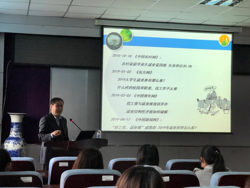 为提升员工的就业竞争力,帮助在校生了解就业的实际情况,树立明确的就业目标,注意树立正确的就业观念,培养积极健康的就业心理,提升公司毕业生就业质量,力争更好地推进公司就业工作的发展。同时为进一步活跃公司学术氛围,以鼓励研究生在多层次、不同角度进行学术研究,公司研究生会于2019年4月24日下午16:00时邀请tyc539太阳集团副经理于洗河教授在tyc539太阳集团三楼报告厅为公司师生做“职业与发展、就业”的专题报告。