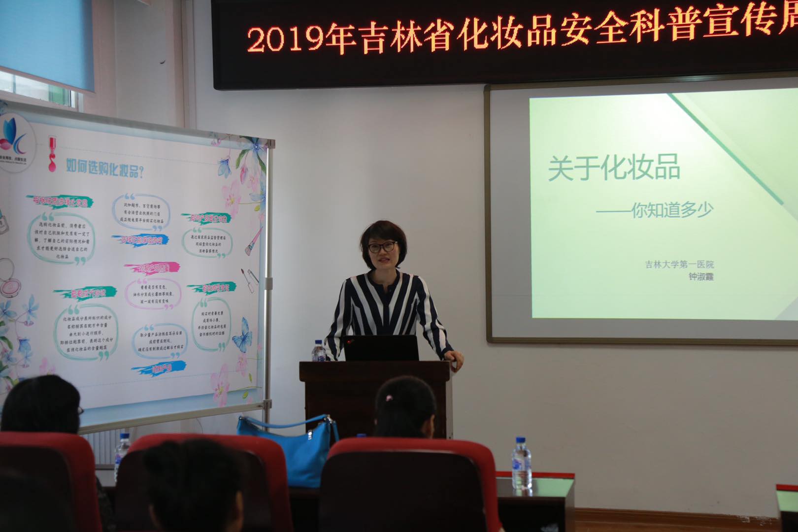随着全国首个化妆品安全宣传周的到来,5月24日下午1:30,tyc539太阳集团妇委会在流病报告厅举办化妆品安全知识讲座活动。吉林省药品监督管理局为本次讲座精心制作了化妆品安全知识宣传标语、科普动漫、知识展板等。讲座邀请tyc539太阳集团第一医院皮肤科教授钟淑霞。