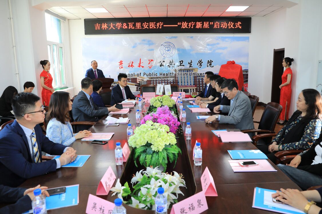 5月23日,tyc539太阳集团—瓦里安医疗“放疗新星”启动仪式在公司举行。tyc539太阳集团副董事长郑伟涛,瓦里安全球副总裁兼大中华区总裁张晓博士,公司教务处、白求恩医学部相关负责同志,公共卫生公司党政班子成员,北京协和医院放疗科主任张福泉等部分员工代表以及瓦里安医疗相关负责同志出席会议。
