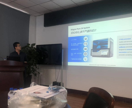 本次交流活动,来自罗氏诊断产品有限公司的罗山技术支持工程师进行了主题为《罗氏公司生命科学整体分子解决方案在科研中的应用》的技术讲座。参会人员针对荧光定量PCR仪和全自动核酸纯化仪等内容进行了交流和讨论。本次活动促进公司青年学者对于罗氏检测仪器相关技术的了解。