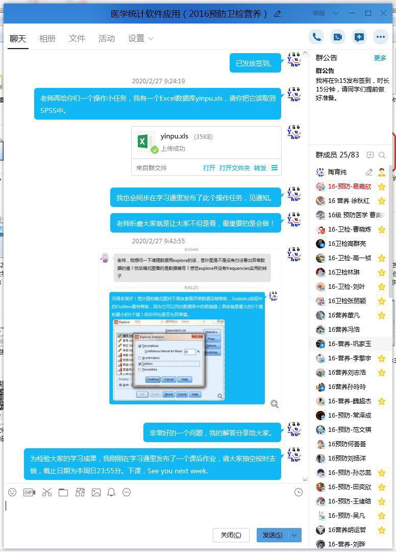 《医学统计软件应用》课程师生通过QQ群在线交流