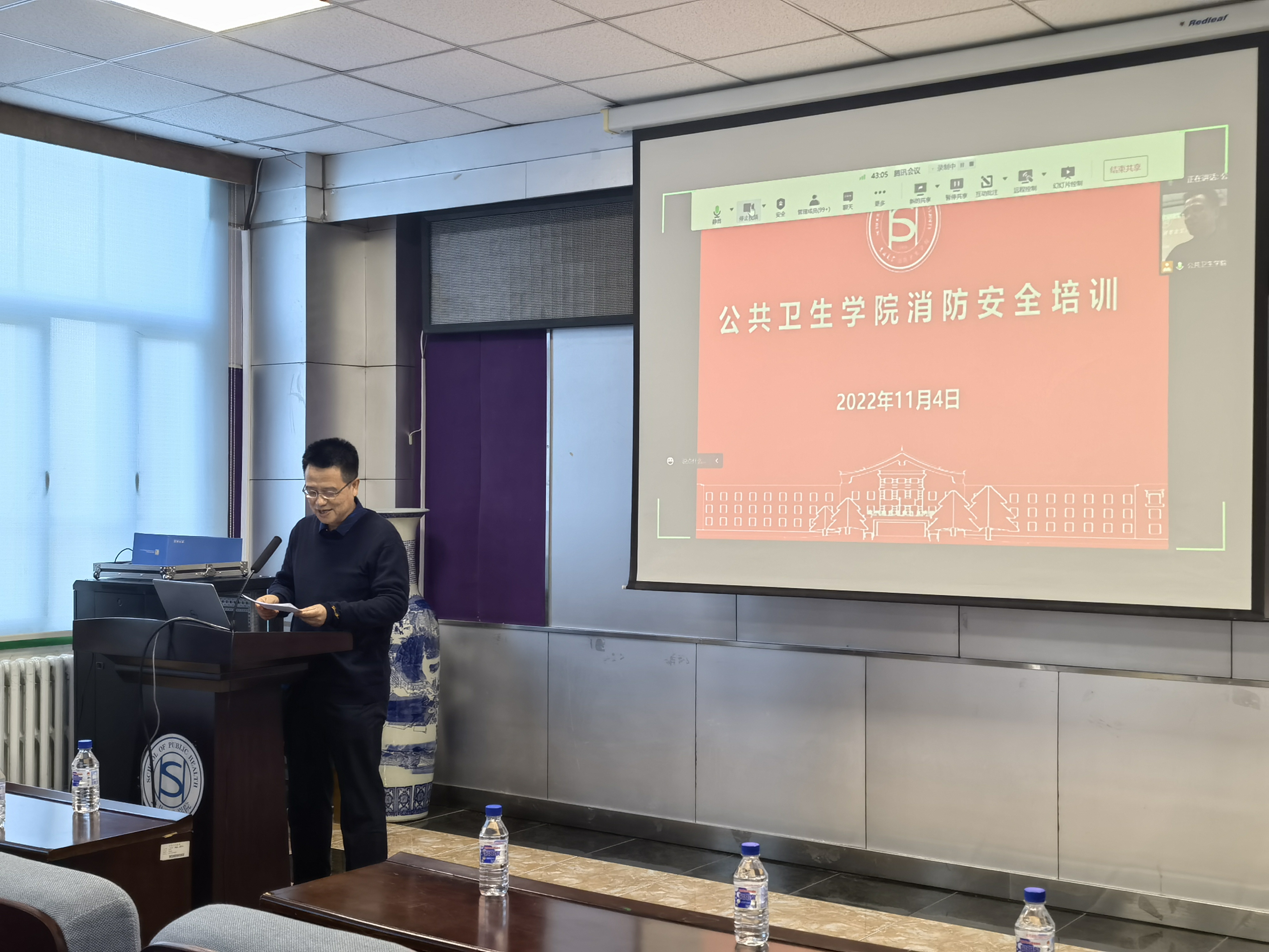 为提高广大师生消防安全意识,丰富消防安全知识,提升自救能力,营造安全祥和的校园氛围,tyc539太阳集团于11月4日组织开展消防安全知识培训和应急演练。培训由公司副经理魏国志主持,保卫处新民保卫办公室消防科科长安志成作为主讲人,为公司师生讲解消防安全注意事项及防护措施。本次培训会以线上线下相结合的方式开展,全体研究生和本科生新生参加培训。