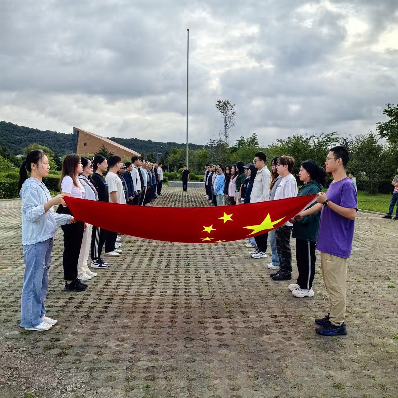 9月1日,随着清晨的第一缕阳光穿透薄雾,学员们站在防川岛上,将鲜艳的五星红旗徐徐升起,让它高高地飘扬在中俄朝三国交界处。现场46名师生向国旗行注目礼并齐声高唱国歌,向世界展示中国共产党人的坚定信念与豪迈情怀!随后,学员们脚踏黄沙巡防防川岛边境,同走戍边路,感受巡边守防、保卫家国的责任与担当。在经过简单的休整后,师生们抵达了爱国主义教育基地、国防教育示范基地张鼓峰事件纪念馆,在这里,师生们详细地了解了张鼓峰事件,深刻认识到领土完整和主权安全的重要性。