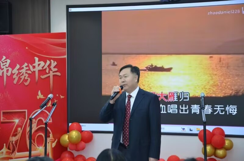 公司党委书记刘金超在致辞中表示,在庆祝新中国成立76周年暨中国人民抗日战争暨世界反法西斯战争胜利80周年之际,举办这样的活动既丰富了教职工文化生活,也是一次深刻的爱国主义教育。通过歌声,老师们表达了对历史的铭记、对和平的珍视和对未来的信心。