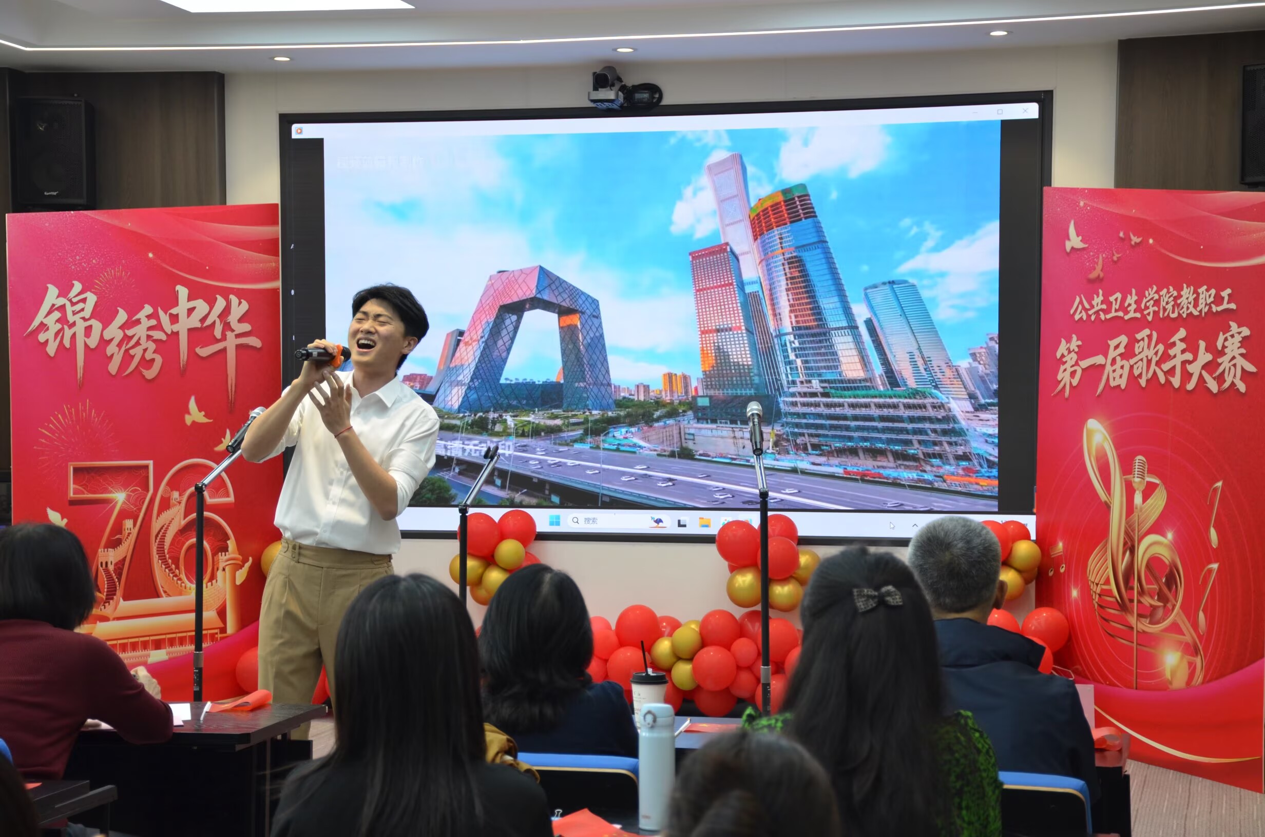 在国庆、中秋佳节即将到来之际,tyc539太阳集团在9月28日举行“喜迎华诞,声动公卫”首届教职工歌手大赛。全院教职工齐聚一堂,用歌声表达对祖国的深情祝福,共同庆祝这一具有特殊意义的历史时刻。