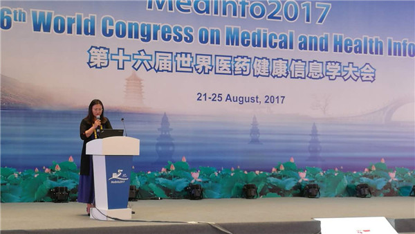 由国际医药信息学会主办,中国医药信息学会等机构联合承办的“第十六届世界医药健康信息学大会”(Medinfo 2017)于2017年8月21日-25日在杭州国际博览中心召开。王伟、曹锦丹、张云秋以及部分硕士和博士研究生参加了会议,并在大会进行了学术报告和论文交流。公司医学信息学系王伟、张云秋、曹锦丹及博士研究生兰雪、贾宇希、硕士研究生朱祥参加了会议。张云秋、兰雪分别在与Medinfo 2017同步召开的“第二届世界医药健康信息学华语论坛”(WCHIS 2017)发言;朱祥提交的论文《基于数据挖掘的中药方剂治疗中风用药规律研究》在壁报展出。王伟、张云秋分别担任了Medinfo 2017的共同主持人。在中国医药信息学会(CMIA)医药信息学理论与教育专业委员会换届中,王伟教授受聘担任CMIA医药信息学理论与教育专业委员会轮值主任委员。