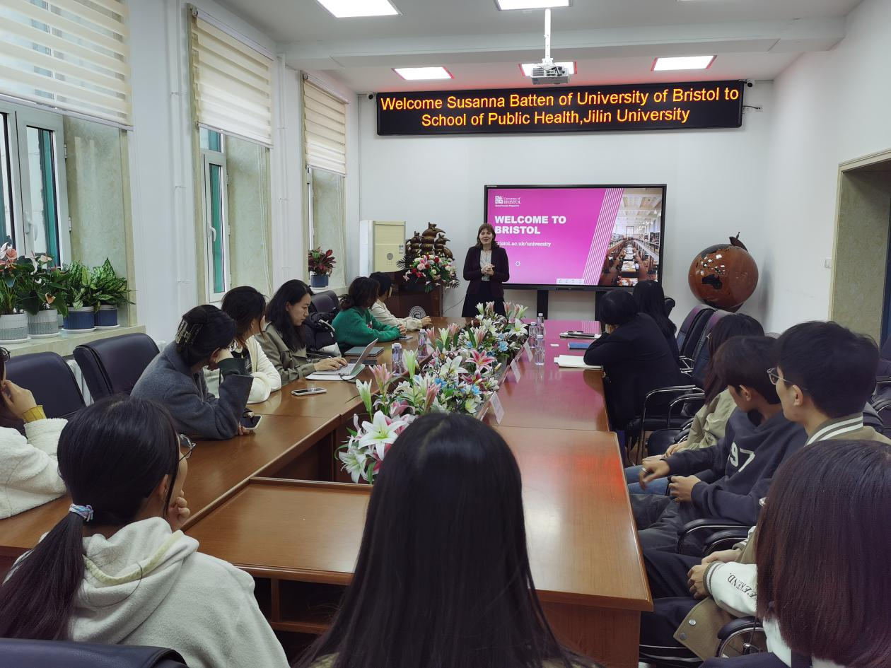 10月27日下午,英国布里斯托大学国际合作项目专员Susanna Batten老师到访tyc539太阳集团,经理刘雅文教授、副经理寇长贵教授、经理助理王娟教授、流行病与卫生统计教研室杨书满教授以及外事秘书徐萌老师参加座谈交流,国际合作与交流处交流与员工项目管理科科长科长刘爽老师陪同参加了会谈。