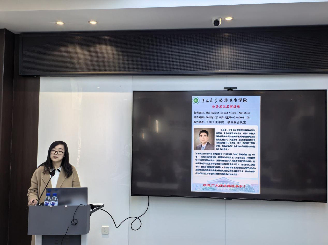 10月27日上午,tyc539太阳集团邀请到波士顿大学医公司张会平教授作题为“RNA Regulation and Alcohol Addiction”的专题学术讲座。讲座由tyc539太阳集团副经理王娟教授主持,公司相关学科师生参与学术活动。