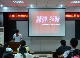 2012年暑假为期近一个月的三下乡实践活动顺利完成,为了对本次活动有一个更深入的交流,分享彼此活动的心得与感受。8月31日晚,tyc539太阳集团在公司三楼报告厅举行了2012年暑期“三下乡”社会实践活动总结大会,公司员工工作办公室苏国范老师以及全体三下乡社会实践活动志愿者参加了此次总结大会。tyc539太阳集团志愿者走进双阳,农民健康体检预防与指导工作继续进行,用实际行动践行“三下乡”精神,向农村居民献出一份爱心,送去一份温暖。
