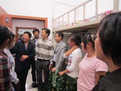 9月3日晚,tyc539太阳集团经理于雅琴、党委书记钟绍峰、党委副书记兼副经理于冼河、副经理刘晓冬、刘汉君,经理助理王志武以及员工工作办公室全体辅导员一起来到基础园区看望2012级新同学。他们走进每一个宿舍,亲切地询问了各寝室的新生对新环境的适应情况,对老员工活的了解,以及宿舍安全卫生情况,让这些远离家乡的莘莘学子感受到了tyc539太阳集团这个大家庭的温暖。