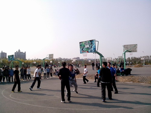 为促进tyc539太阳集团12级新生与11级员工的交流,公司员工会于10月12号12:30在南区篮球场组织了一场友谊篮球赛。参赛队伍分别由11级同学和12级新生构成,12级新生观看了这次比赛。