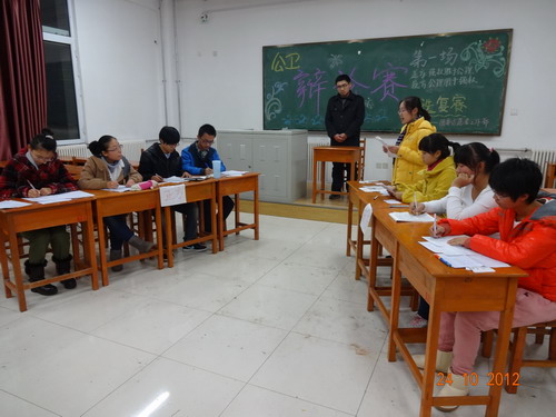 此次辩论赛共分四场,来自2012级的七个班级以及11级院辩论队围绕“强权胜于公理”、“个性需要刻意追求”、“情在理先”、“乱世应该用重典”四个辩题,进行了激烈的讨论。辩论共分为开篇立论、攻辩、自由辩论和总结陈词四个部分。比赛过程中,各班辩手配合默契、思维缜密、语言犀利,对乙方的观点层层深入。双方辩手更是针锋相对、唇枪舌剑、步步紧逼,以致场上的气氛一度达到白热化的阶段,难分高下。最后,经评委认真审核选出胜方和最佳辩手,同时还选出10名同学加入院辩论队,代表公司参加校辩论赛。