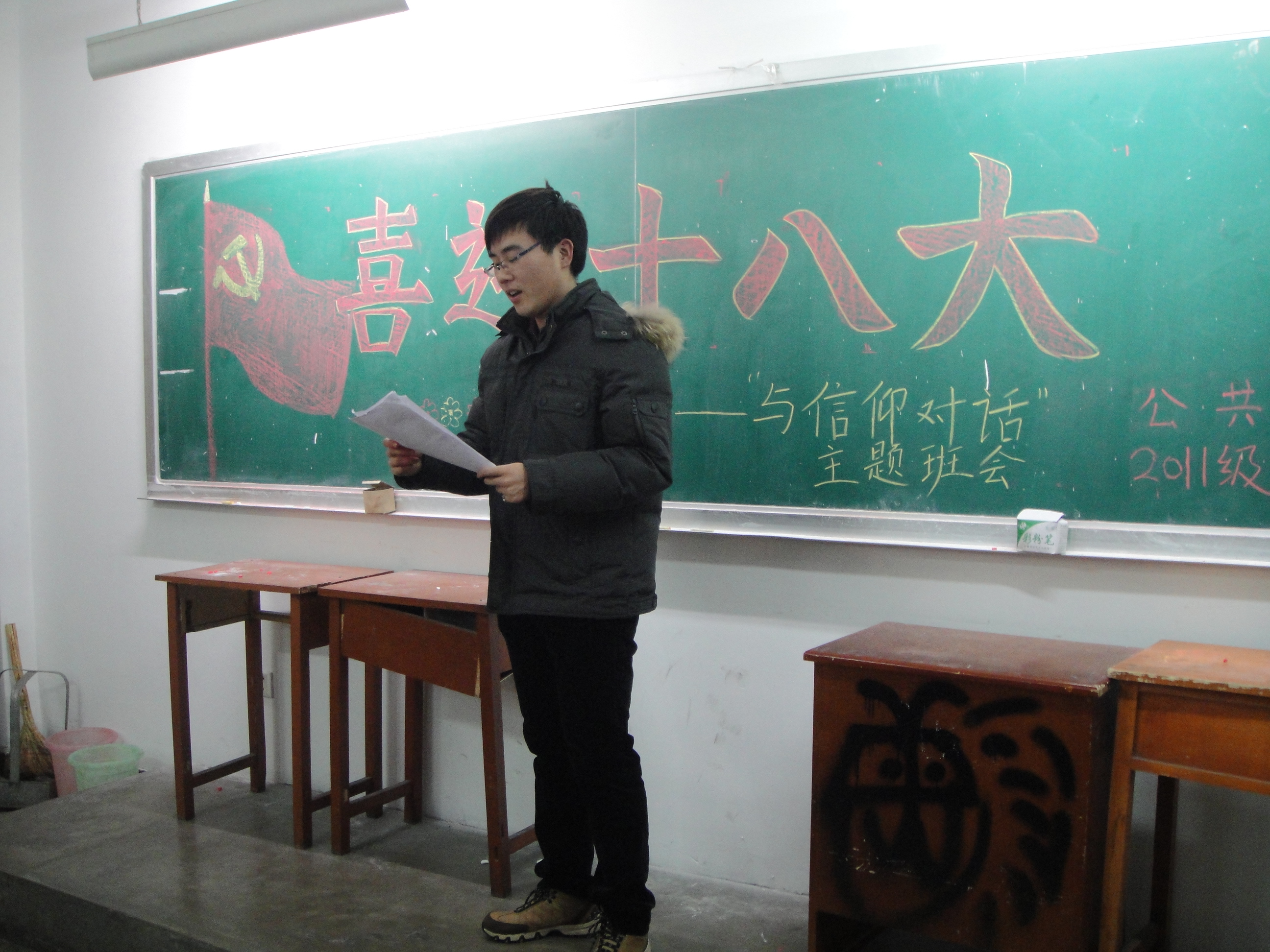 2012年11月17日,为响应tyc539太阳集团团委“与信仰对话,喜迎十八大——理论名篇名家推荐和理论经典研读”活动的号召,深入学习贯彻十八大精神,丰富同学们的精神文化生活,并帮助同学们把握正确的人生方向,tyc539太阳集团团委于新民校区第一教学楼106教室举办了“深入学习贯彻十八大思想,把握正确人生方向”主题交流会。2011级预防医学专业全体员工参加了此次交流会。