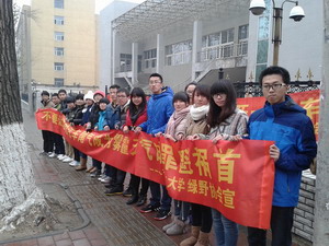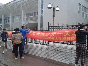 为提高tyc539太阳集团同学以及社会各界人士的低碳生活意识,减少环境污染,提高居民生活质量,tyc539太阳集团绿野环保协会在tyc539太阳集团团委的领导下,策划并开展了“低碳生活”系列之“每周少开一天车”低碳宣传活动。11月16日上午十一点,绿野协会12级和13级成员在长春市新疆街街边边拉起横幅,针对广大私家车车主开展宣传活动。