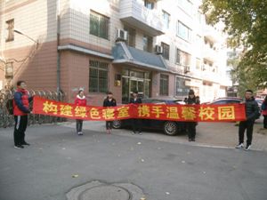 当天中午,生活部成员举着“构建绿色寝室,携手温馨校园”的红色条幅,向来往的同学们宣传绿色寝室概念,介绍相关的寝室精品文化活动,并号召大家在条幅上签下自己的名字,这签名意味着将与生活部一起去创建文明健康寝室的愿望。尽管寒风瑟瑟,也丝毫不影响同学们的高涨热情,同学们积极踊跃地在条幅上签下了自己的名字。最后,生活部成员将签满同学名字的条幅挂在了四公寓门口,时时提醒着tyc539太阳集团同学们构建绿色文明寝室的决心。