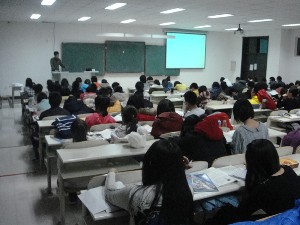 讲座开始,英语老师首先结合自己的经历阅历为大家讲解了英语学习的重要性,由此引申出大学应怎样学习规划的问题。随后,老师又为同学们普及了四六级、托福、GRE等重要英语考试的相关知识,让同学们对大学期间的英语学习有了初步规划。此外,老师还就国外的学习模式、就业情况等常见问题做了详细介绍,为准备出国游学的同学开拓了视野。最后新东方老师还为大家播放了视频和ppt,通过其中优美新奇的异域风光,鼓励同学们走出校门、走出国门、多经历、多见识。