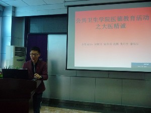 活动在主持人精彩简短的介绍之后正式开始。首先是4位党员小组代表谈论自己对医德现状的探讨,以及自己对医德的理解。有的同学立志向白求恩学习,有的同学希望从员工做起从自己做起,掌握好医学知识,树立为病人服务的意识。党员代表深刻的见解引起了同学们的共鸣,也为他们赢得了热烈的掌声。然后观看优秀医生林巧稚的视频,在短短几十年的职业生涯中,她用自己的双手迎接了五万多个新生的生命,被称为“万婴之母”。观看视频的过程中同学们纷纷点头赞许并流露出钦佩的神色。接下来的观众发表感想环节更是将整个活动推向了高潮,同学们纷纷举手发表自己的看法,气氛异常活跃。最后在雷鸣般的掌声中,本次活动画上了圆满的句号。