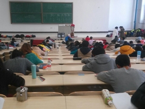 为提高同学们对学习的重视,抓紧时间进行期末复习,12月14日,2014级全体同学在中心校区李四光教学楼进行了入学来的第一次期末摸底考试。公共卫生公司党委副书记兼副经理、2014级辅导员刘丽老师对本次期中考试进行了监考。