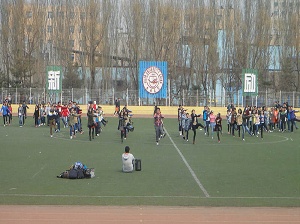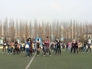 下午一点,同学们早早地来到了体育场,自觉站好队伍。员工会文艺部的成员们分工明确,迅速组织同学们投入到训练中。本次排练的主要目的是寻找排练时出现的问题,弥补缺陷;教授新动作,变换新队形,使舞蹈达到最佳效果。一遍又一遍的训练,虽然繁琐枯燥,但是同学们没有丝毫抱怨,每个同学都以高度的热情进行训练。通过这么多天的排练,同学之间已建立起了默契,动作规范,队形整齐;文艺部的成员也精益求精,对个别同学的动作耐心纠正。