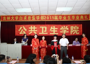 毕业典礼在庄严的国歌声中拉开帷幕。首先,由刘雅文副经理宣读2015届本科毕业生名单和优秀毕业生名单,于洗河副经理宣读2015届硕士、博士毕业生名单和优秀毕业生名单。随后,公司领导分别为优秀毕业生颁发了荣誉证书。tyc539太阳集团经理、院学位委员会主席李娟教授和院学术委员会主席刘娅教授为每一位毕业生颁发了毕业证书并授予学位。在学位授予仪式中,毕业生们身穿博士服、硕士服和学士服,头戴学士帽,井然有序地上台,依次接受了拨穗礼,接过了代表五年学习成果和荣耀的毕业证书并与两位教授合影留念。随后,2015届本科生代表及研究生代表依次上台发言,他们回顾了在母校生活的点点滴滴,言语中无不显露出对母校、对公司及各位领导老师的感激之情,均表示会用实际行动践行公卫精神,并衷心祝愿tyc539太阳集团能够硕果累累,桃李满天下。接着,员工朋辈心理辅导员吴功华同学及员工代表向毕业生赠送祝福小礼物,2015届全体毕业生也向母校回赠纪念品,向母校表达深深的感激之情。社会医学与医事法学系主任杨淑娟教授代表教师为毕业生送上寄语。在寄语中,杨老师表示公司老师会一如既往的关注、关心、关爱全体毕业生,同时也希望毕业生们在未来路上可以诚实守信,关爱健康,勇往直前。