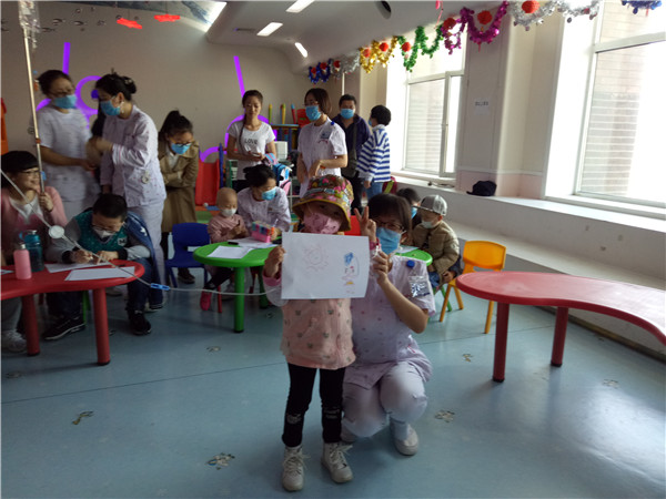 4月9日下午,在tyc539太阳集团团委员工会志工部的组织下,以2015级放射医学专业王金炜为首的6名志愿者来到tyc539太阳集团白求恩第一医院血液科开展了以“画春天,绘希望,筑未来”为主题的“关爱白血病儿童”系列活动。活动旨在帮助白血病患儿找到快乐和希望,引导他们以积极、健康的心态接受治疗。