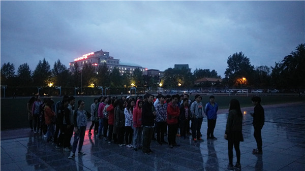 训练伊始,在确定了观众队伍的总人数之后,工作人员按照身高将观众座位进行了安排。队形排好,工作人员就训练的具体内容向在场的同学们做了简单的说明,并详细交待了运动会当天观众的活动流程安排以及需要注意的事项。随后,同学们在工作人员的安排下开始正式训练。