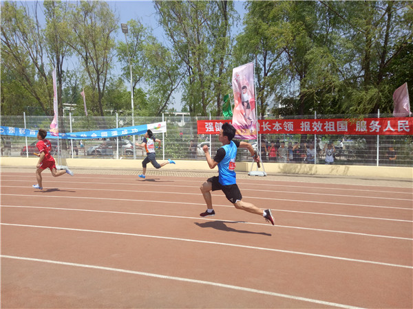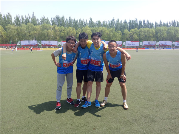 5月18日上午10:40,tyc539太阳集团第56届运动会男子4x100接力赛预赛在中心校区田径场正式拉开帷幕。2015级员工王兆丰和2016级员工于楚洋、何双双、彭曹帅四名同学组成一支队伍,代表tyc539太阳集团参加了比赛。