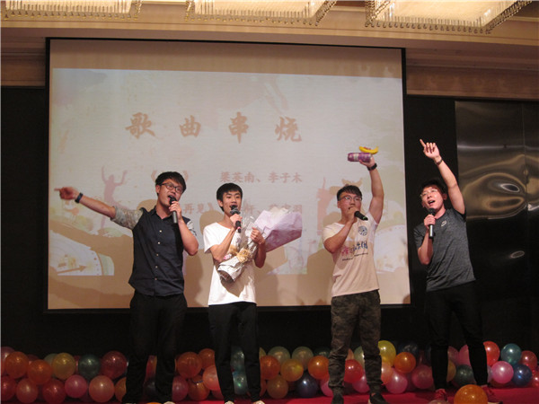 晚会以歌舞、戏曲、朗诵等多种表演形式展现了毕业生对母校的依恋之情和对未来的无限期待。晚会伊始,2016级新生以开场舞《boom clap》献礼毕业生,唤起毕业生们的青春热情。歌舞串烧《老街》《不说再见》诠释了毕业生们对公司、老师、同学的难舍情谊;诗朗诵作品《再见,那五年》的精彩演绎,带领毕业生们重温了校园生活的点点滴滴;2014级王红、赵汗青,2015级杜雨师、李清心等同学,通过风格迥异的流行歌曲,唱出了毕业生们对青春岁月的美好眷恋和对未来生活的深情向往;研究生马荣爽、郑彤等同学表演的舞蹈《成人礼》,以性感、活泼的舞步彰显出公司学子的青春活力。值得一提的是,吴晓辉主任与2012级员工齐达合唱样板戏《沙家浜》中的选段《智斗》,令人耳目一新,两位演唱者字正腔圆、动作精巧,将晚会推向了高潮。压轴出场的2017届毕业生年级辅导员郭倩君,优雅献唱《玛依拉变奏曲》,歌声悠扬,曲调优美,字字珠玑,饱含深情,真诚表达了对毕业生的不舍和美好祝愿,引爆了全场。晚会在师生合唱的《青春纪念册》中接近了尾声,优美的音符,动听的歌声,深情传达出毕业生们的远大理想:今天,我以吉大公卫为荣;明天,吉大公卫以我为骄傲!