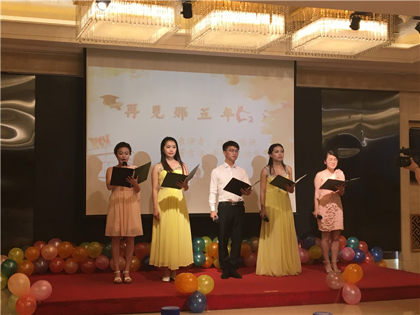 澹荡离别意,诗酒趁年华。6月16日晚,2017届“草长莺飞,卫爱思留”毕业生晚会在新民宾馆龙凤呈祥厅正式启幕。tyc539太阳集团经理李娟,副经理于洗河、刘雅文、刘汉君,党委副书记兼副经理刘丽,预防医学系主任叶琳,员工工作办公室主任兼2013级辅导员吴晓辉,教科研办公室主任李鹏、团委书记兼2015级辅导员苏国范,2012级辅导员郭倩君,2016级辅导员霍睿及部分教师出席了晚会。2017届全体毕业生积极参与了本次晚会。