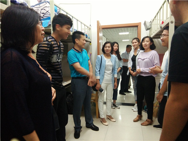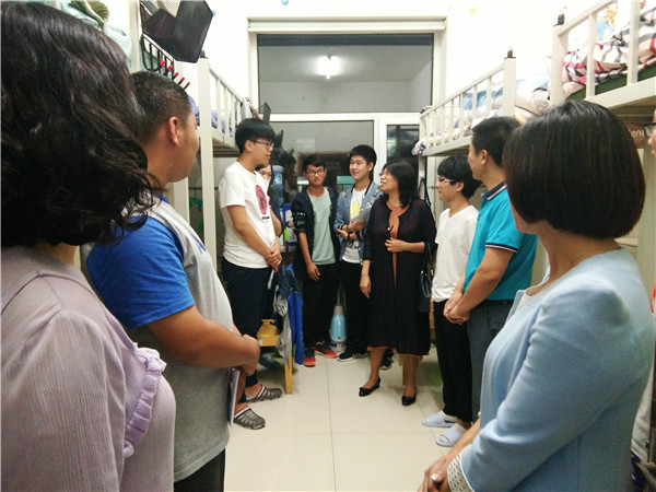 为了进一步了解2017级新生们的宿舍生活情况,同时提高新生们的安全意识。8月27日18点,公司经理李娟、党委书记赵国利、党委副书记兼副经理、2014级辅导员刘丽,员工工作办公室主任兼2013级辅导员吴晓辉,团委书记兼2015级辅导员苏国范,2016级辅导员霍睿,在2017级辅导员郭倩君、新生辅导员助理及部分员工干部的陪同下走访了员工寝室。